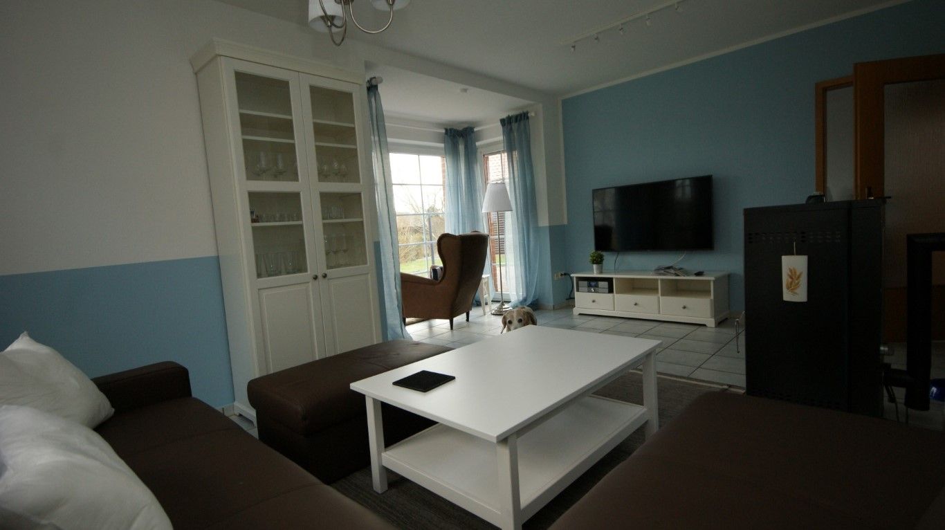 Küche, zwei Bädern und einer großen Terrasse mit Deichblick. Die EG-Wohnung hat mit ca. 85 qm eine angenehme Größe und ist umfangreich ausgestattet mit allem, was einen angenehmen Urlaub ausmachte.